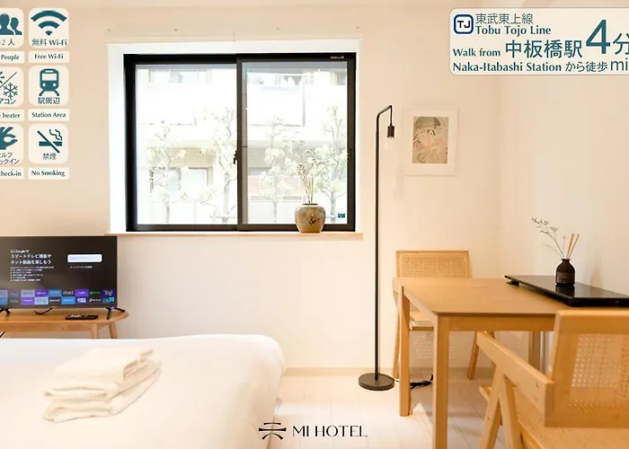 公寓距离板橋本町站地铁站有550米。 开车32就可以抵达东京羽田国际机场,赤羽八幡神社距离公寓3公里。 Mi-Hotel Calm Riverside位于板桥区。它旁边有Higu Bagle & Cafe 及Ganso Maguro Ramen Honten,走路只需5分钟。 公寓距离巢鸭地藏通商店街不远。